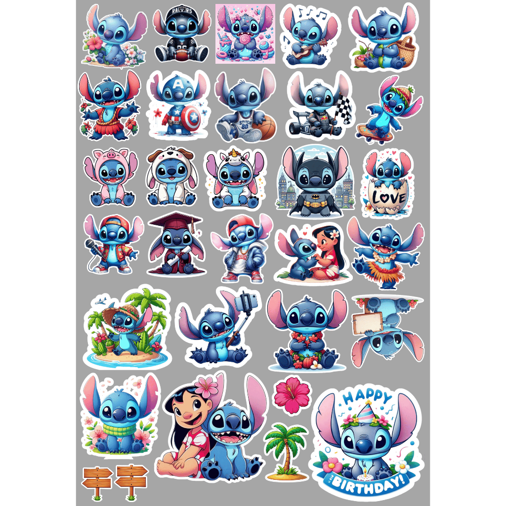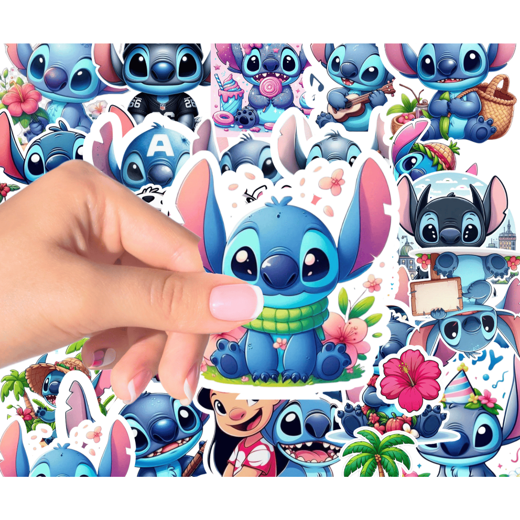 Cartela com 60 Adesivos Lilo e Stitch – Tamanho 4 a 6cm | À prova d'água, coloridos e fofos! 🧡 - Alta Qualidade!