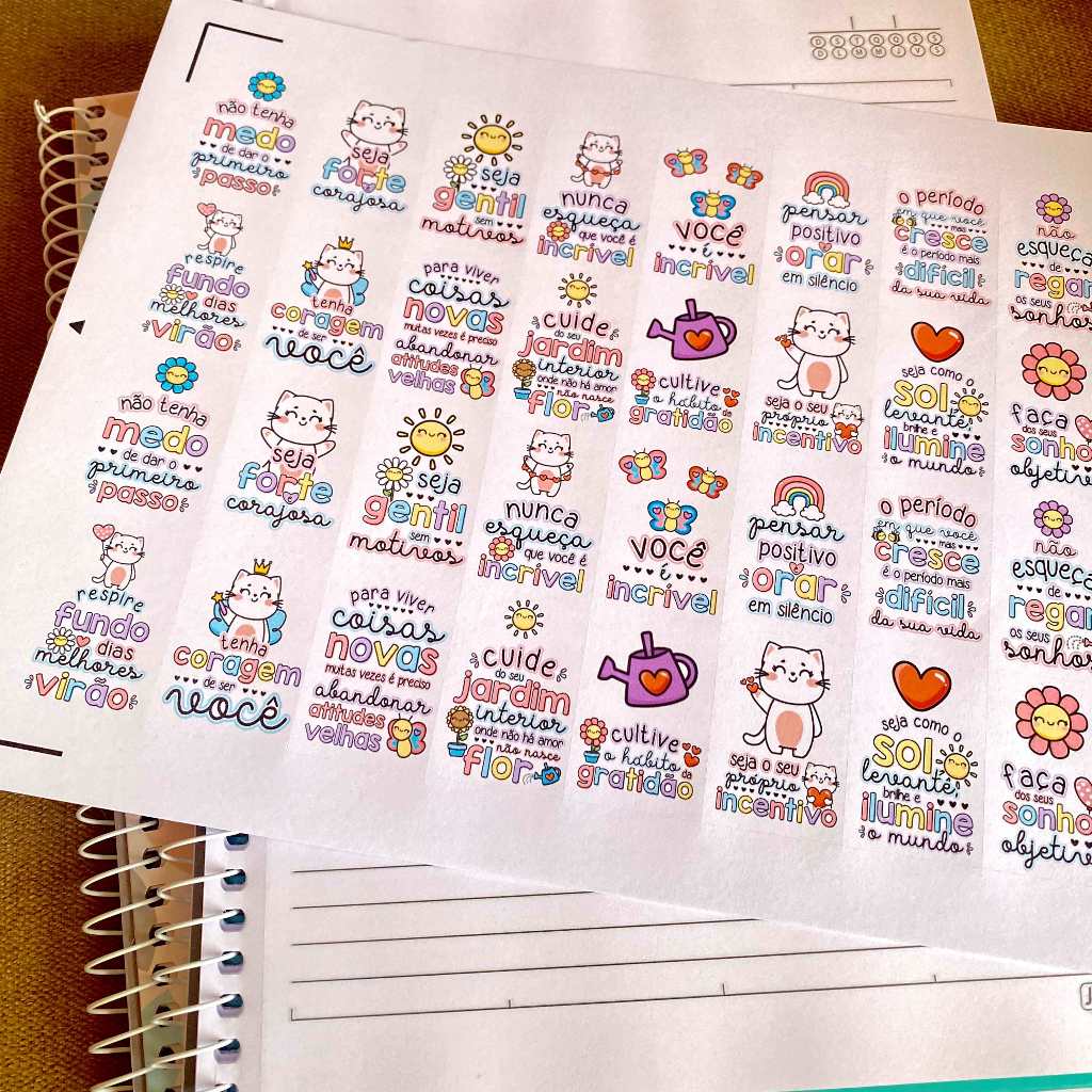 Um incentivo motivacional cheio de carinho para o dia seu e para alguém que precisa! Cartela com adesivos em acabamento fosco