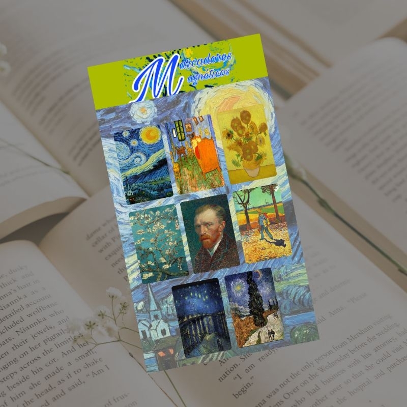 Cartela com 8 mini marcadores magnéticos obras de arte Van Gogh Leonardo da Vinci Claude Monet mod5