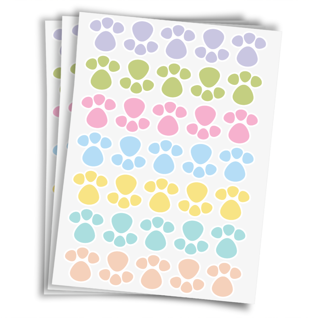 Cartela de Adesivo c/ 100 Patinhas De Coelho Pegadas de Vinil Trilha Caça Aos Ovos de Páscoa Pata