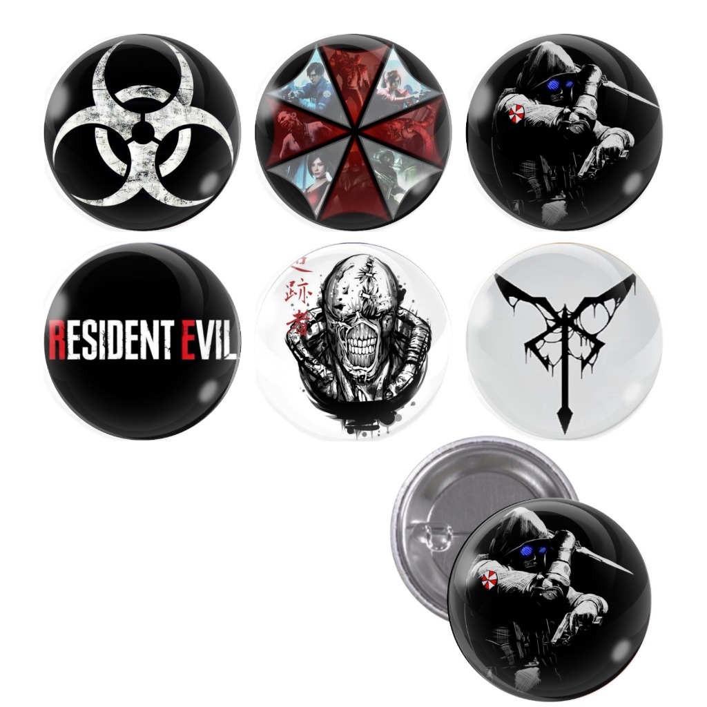 Cartela De Buttons Pins Broche Umbrella Resident Evil Jogo Leon Com 6 Unidades Gamer / Nerd / Geek