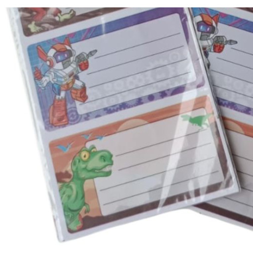 Cartela de Etiquetas para Material Escolar Estampas Decoradas Dinossauro Menino
