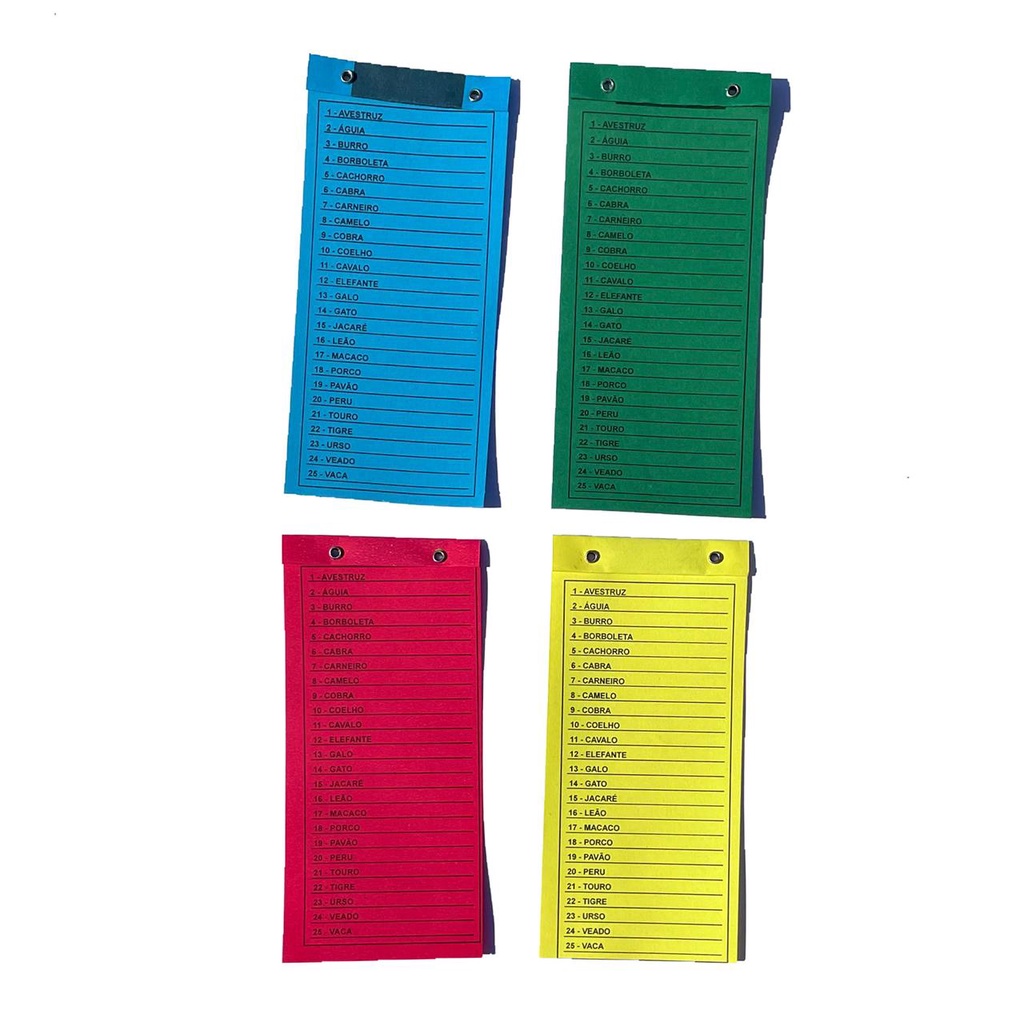Cartela de Rifa 25 Bichos (Pacote com 10 unidades)