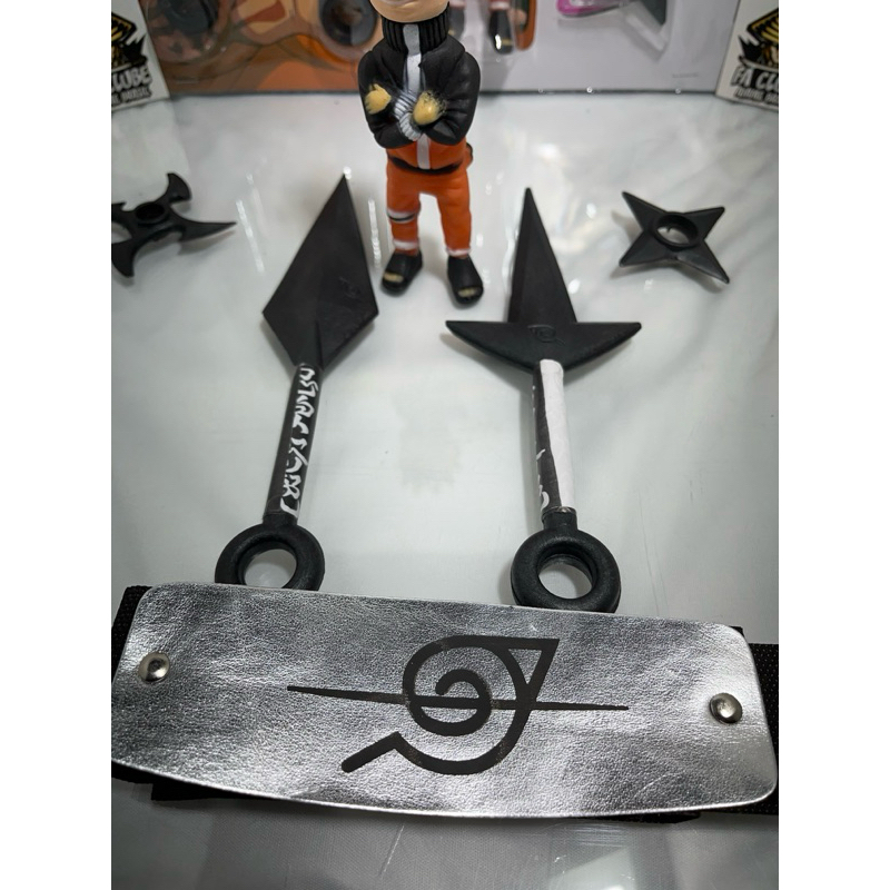 Cartela do Naruto Grande - plástico Badana Boneco Shuriken Contém 1 bandana 1 Boneco Naruto 2 Shuriken 1 Kunai Basica 1 Kunai do Minato