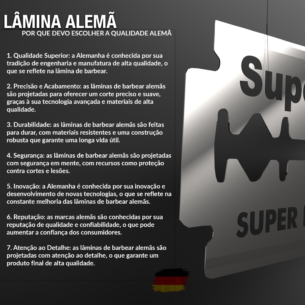 | Cartela Lâmina De Barbear Inox Super Barba Premium Black Alemanha 6... este produto | R$ 49,90 | — | 4.9/5 | 142 |