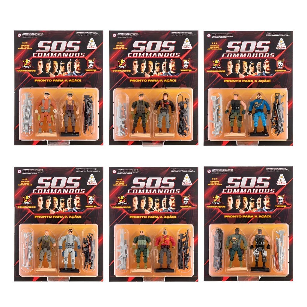 Cartelas de Boneco SOS Commandos - Gulliver - Contém 2 bonecos por cartela, tendo 6 opções de escolha (Total 12 bonecos) - Produto Colecionável