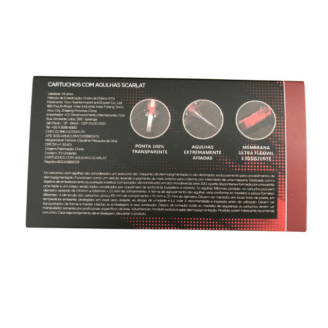 Cartucho Scarlat Premium para Tatuagem Tattoo - 20 Unidades