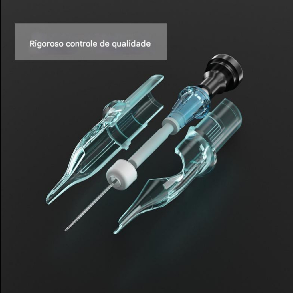 CONTÉM: - 10 UNIDADES (02 CARTELAS C/ 05 CARTUCHOS) DO MESMO TAMANHO. NÃO MESCLAMOS MEDIDAS, FAVOR NÃO INSISTIR. TAMANHO: 12 (35mm) 10 (30mm) Agulha de cartucho de tatuagem AURORA II Seguro e Higienizado Linha de produção padronizada para garantir que cada agulha seja feita com precisão, tornando cada agulha a melhor que precisa aço inoxidável 316 premium, maior dureza e mais afiado. Registro ANVISA nº: 82209839003 INDICAÇÕES E INSTRUÇÕES --- Agulha RM ou CM (Magnum Curvada): Possui diversas agulhas soldadas entre si de forma curvada, é recomendada para sombreamento mais suaves, preenchimentos coloridos e aplicação de detalhes. Por ter este formato ela realiza o preenchimento sem marcar, deixando o desenho mais homogêneo. --- Agulha RL: As agulhas RL são as mais utilizadas pelos tatuadores de todos os estilos. Essas agulhas são soldadas cerca de 3mm antes da ponta da agulha. A quantidade de agulhas define que tipo de traço será realizado (superfina, fina, grossa ou preenchimento). SUPER UTILIZADA PARA TATUAGEM FINE LINE --- Agulha RS: O modelo RS possui as agulhas soldadas em cerca de 5 a 6 mm da ponta. Elas possuem o mesmo formato das agulhas RL somente sendo mais abertas. São perfeitas para pintura e sombreamento mais leves. São bastante utilizadas para o estilo Bold Line por serem mais suaves na hora do preenchimento. --- Agulha M1 ou MG (Magnum Traçada): Por conta do formato, ele enfrenta uma menor resistência na pele, por isso é mais utilizada para pinturas mais sólidas e pesadas. O Taper médio, geralmente é utilizado para colorir, por permitir maior contato das agulhas com a pele. O Taper longo é utilizado para trabalhos Preto e Cinza, por permitir mais tempo na pele para um preenchimento controlado