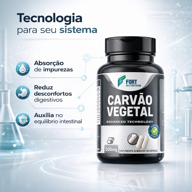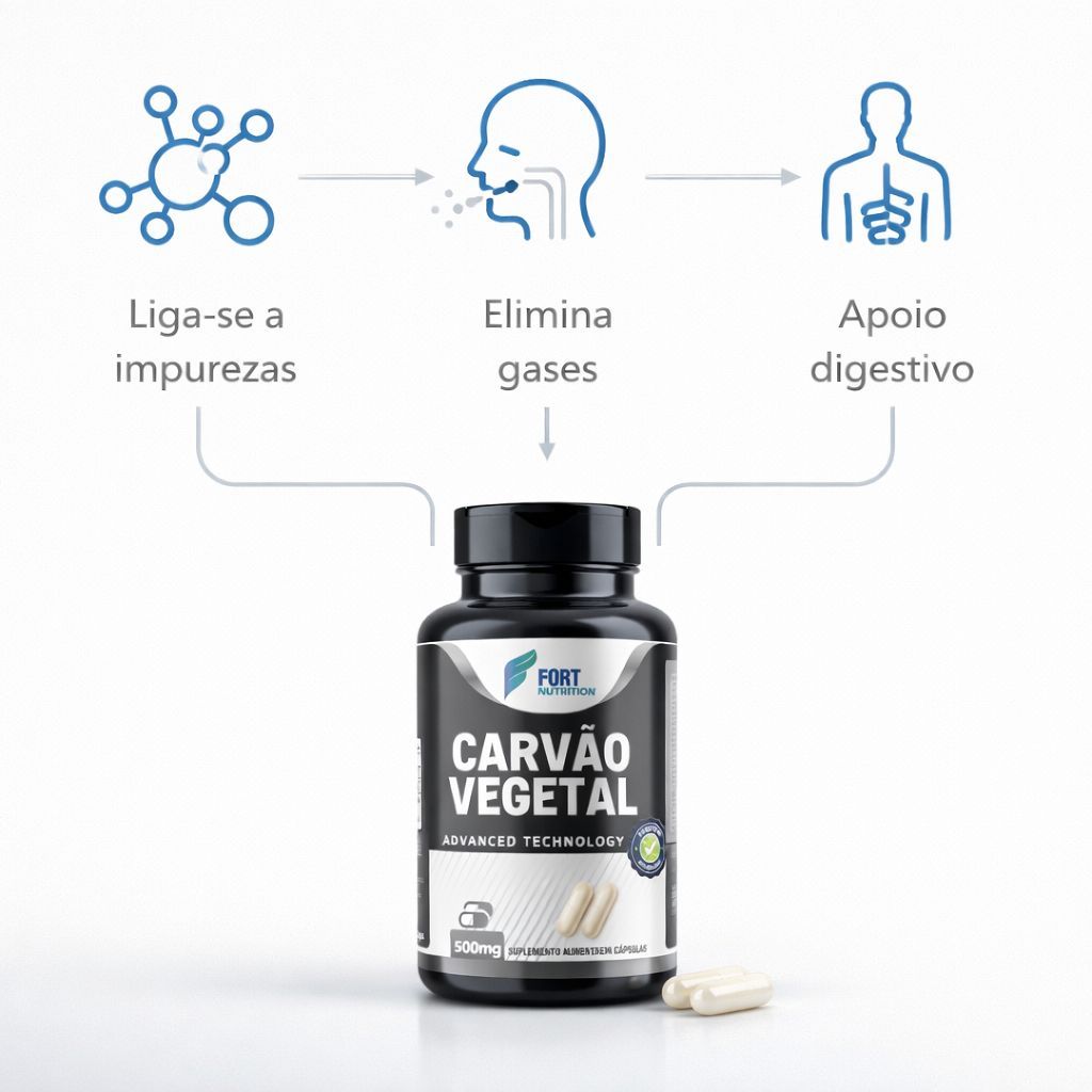 Carvão Vegetal Ativado 500mg – Suporte Digestivo e Equilíbrio – 120 Cáps por Pote - Envio Rápido