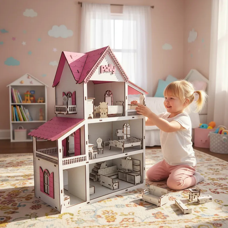 Se você está procurando o presente perfeito para encantar e divertir, encontrou o lugar ideal! A nossa Casinha de Bonecas em MDF é a escolha perfeita para quem busca produtos duráveis, de alta qualidade e repletos de charme. Características Únicas: * Diversão e Criatividade: Com três andares e três varandas, a casinha oferece um espaço amplo para brincar e explorar, estimulando a criatividade e a imaginação das crianças, permitindo a criação de inúmeras histórias e cenários. * Desenvolvimento Cognitivo: Brincar com a casinha ajuda no desenvolvimento cognitivo das crianças, aprimorando habilidades motoras finas, coordenação mão-olho e capacidade de resolução de problemas. * Interatividade Social: A casinha de bonecas promove a interação social, permitindo que as crianças brinquem juntas, desenvolvendo habilidades de comunicação, colaboração e empatia. * Reduz o Tempo de Tela: Brincar com brinquedos físicos como uma casinha de bonecas pode reduzir o tempo que as crianças passam na frente de telas. * Educação e Entretenimento: Este brinquedo não apenas entretém, mas também educa, proporcionando um ambiente seguro onde as crianças podem aprender conceitos de organização, responsabilidade e até mesmo arquitetura básica. DIMENSÕES DA CASA: Altura: 56,5cm Largura: 44,5cm Profundidade: 20,5cm Espessura: 2,8mm ATENÇÃO - TODOS OS PRODUTOS VÃO DESMONTADOS - NÃO ACOMPANHA COLA - APOS A COMPRA ENTRAR EM CONTATO COM NOSSO CHAT PEDINDO O VIDEO E MANUAL DE MONTAGEM DO PRODUTO * Nossa casinha é enviada desmontada para garantir que as peças cheguem em segurança sem danos e quebras, proporcionando tambem uma experiência descomplicada e divertida na hora da montagem, que pode se transformar em um momento especial entre pais e filhos. Acompanha 30 mini móveis detalhadamente trabalhados, incluindo: Abajur - Armário de cozinha - Banco - Banheira - Berço - Cadeira de balanço - Cadeiras - Cama de casal - Cama de solteiro - Cômoda - Cristaleira - Fogão - Geladeira - Guarda-Roupas - Mesa - Pia de Banheiro - Pia de cozinha - Penteadeira - Mesa de centro - - 3 sofás (1, 2 e 3 lugares) - TV - Vaso sanitário - Aparador - Rack de sala - Mancebo Casinha de bonecas em MDF - Casinha de bonecas - Casa de bonecas de madeira - Casinha de bonecas com móveis - Casa de bonecas infantil - Casa de bonecas colorida - brinquedos educativos - Madeira MDF Agradecemos sua confiança e desejamos boas compras