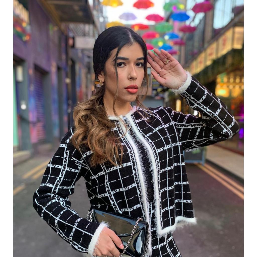 Casaco Blusa de Frio Xadrez Feminina Tricot Mousse Leve Macio Elegante Inverno 2025 Marister Malhas