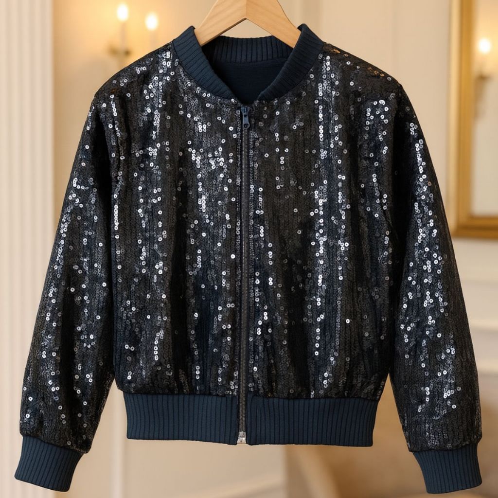 Casaco Bomber Paetê Infantil Jaqueta Menina Brilho Novidade