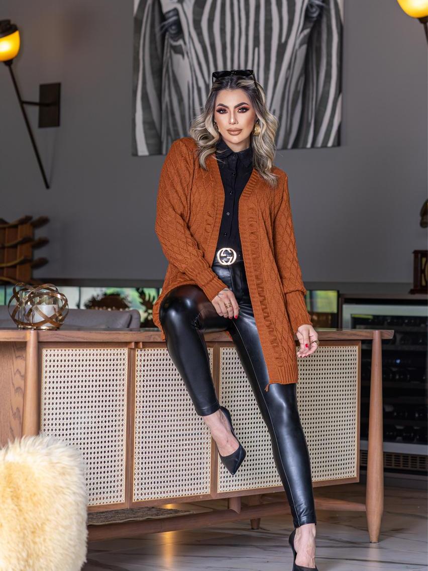 Casaco Cardigan Alongado Feminino Tricot – Sofisticação e Conforto para o Inverno! ❄️✨ Se você busca um casaco elegante, versátil e quentinho para os dias frios, acaba de encontrar a peça perfeita! Nosso Cardigan Alongado em Tricot combina conforto, sofisticação e qualidade impecável para elevar seus looks de inverno. 🧶 Conforto e Qualidade em Cada Detalhe Produzido com tricot encorpado de alta durabilidade, esse casaco possui uma textura sofisticada em losangos que adiciona um toque moderno e refinado ao visual. Sua modelagem alongada proporciona um caimento impecável, trazendo leveza e fluidez ao look. 💃 Versatilidade para Qualquer Ocasião Esse cardigan é a escolha ideal para quem deseja montar looks elegantes e práticos. Algumas formas de usá-lo: ✔ Com jeans e botas para um visual casual chic. ✔ Sobre um vestido midi para um toque romântico e moderno. ✔ Com legging de couro e salto alto para um look sofisticado e poderoso. ✔ Como sobreposição em looks de trabalho, garantindo conforto sem perder a elegância. 📏 Tamanho Único – Veste do 36 ao 44 Modelagem perfeita para diferentes biotipos, com medidas ideais para um caimento confortável: ✅ Comprimento: 88 cm ✅ Largura: 52 cm ✅ Comprimento da manga: 62 cm 🎨 Cores Disponíveis – Escolha a Sua Favorita! 🖤 Preto – Clássico e atemporal 🤎 Ferrugem – Tendência e sofisticação 💖 Fúcsia – Moderno e vibrante 🤍 Off-white – Elegância neutra 🌷 Nude – Delicado e versátil 🛁 Cuidados com a Peça Para manter seu casaco sempre lindo, siga essas recomendações: ✔ Lave à mão com sabão neutro. ✔ Não use alvejantes ou produtos abrasivos. ✔ Seque à sombra para preservar a cor e textura. ✔ Passe a peça em temperatura baixa, se necessário. 💥 De R$139,90 por apenas R$69,90! Uma peça essencial no seu guarda-roupa de inverno por um preço imperdível! 🛒 Garanta já o seu e fique deslumbrante na estação mais charmosa do ano!