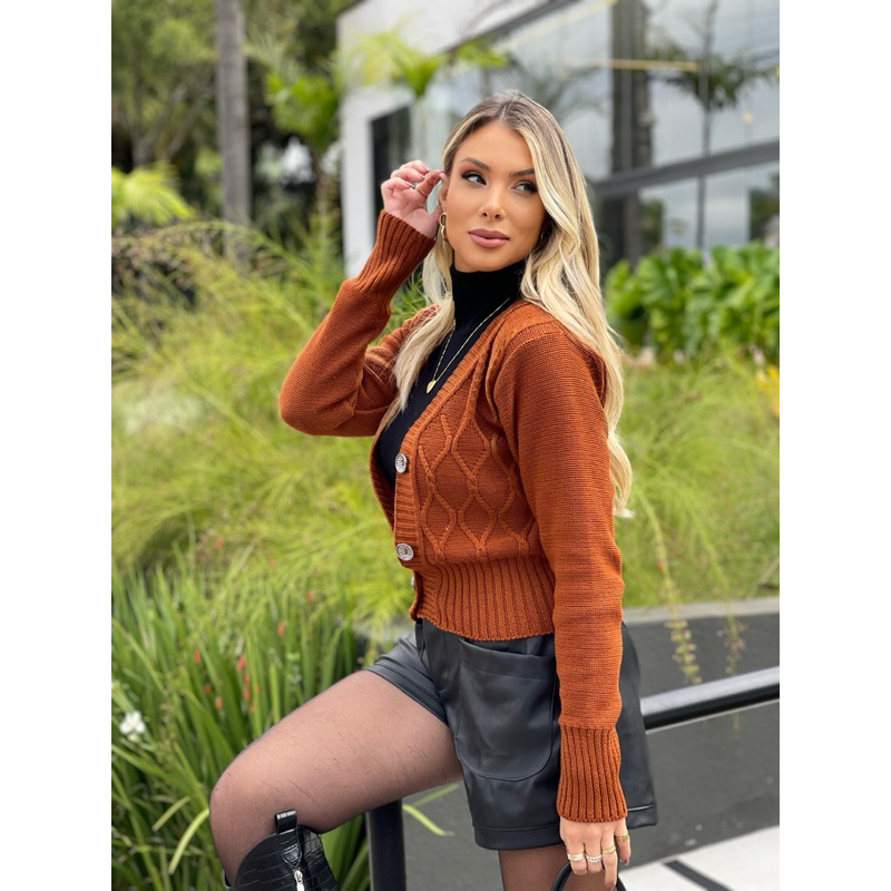 Casaco Cardigan Aram de Frio Feminino Manga Longa Inverno Tricô Tricot 2025