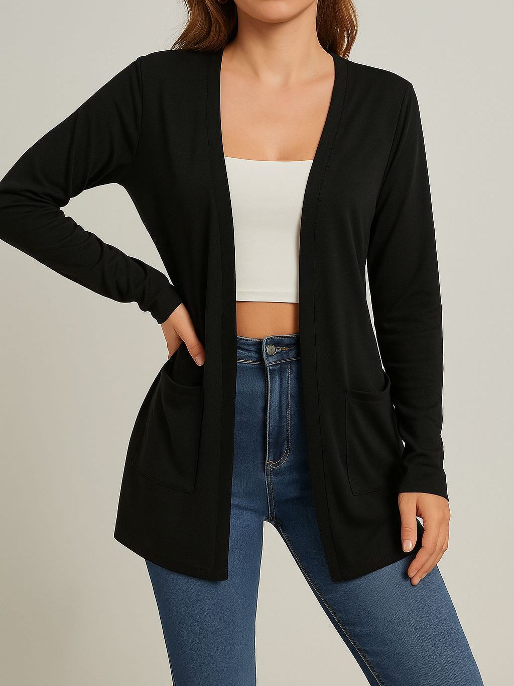 Casaco Cardigan/ Cardigã Feminino Manga Longa Com Bolsos Outono/Inverno