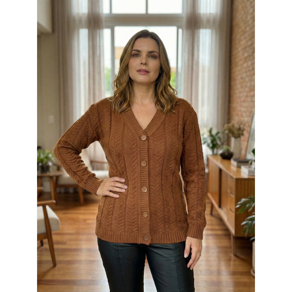 Casaco Cardigan Feminino de Tricot Blusa de Frio Elegante Inverno Moda Feminina Tamanho Único