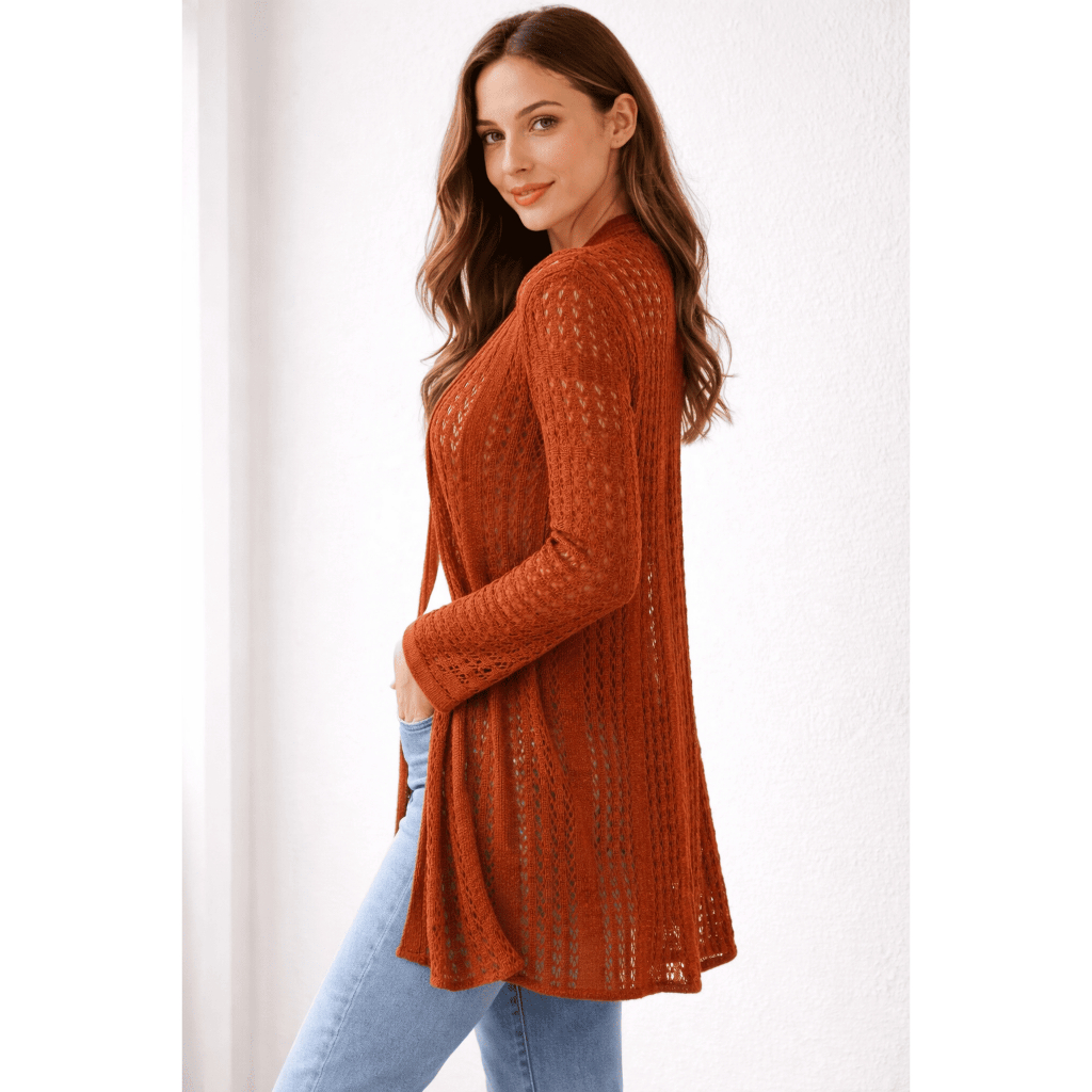 Casaco Cardigan Feminino Tricot Rendado Leve Alongado Outono Inverno