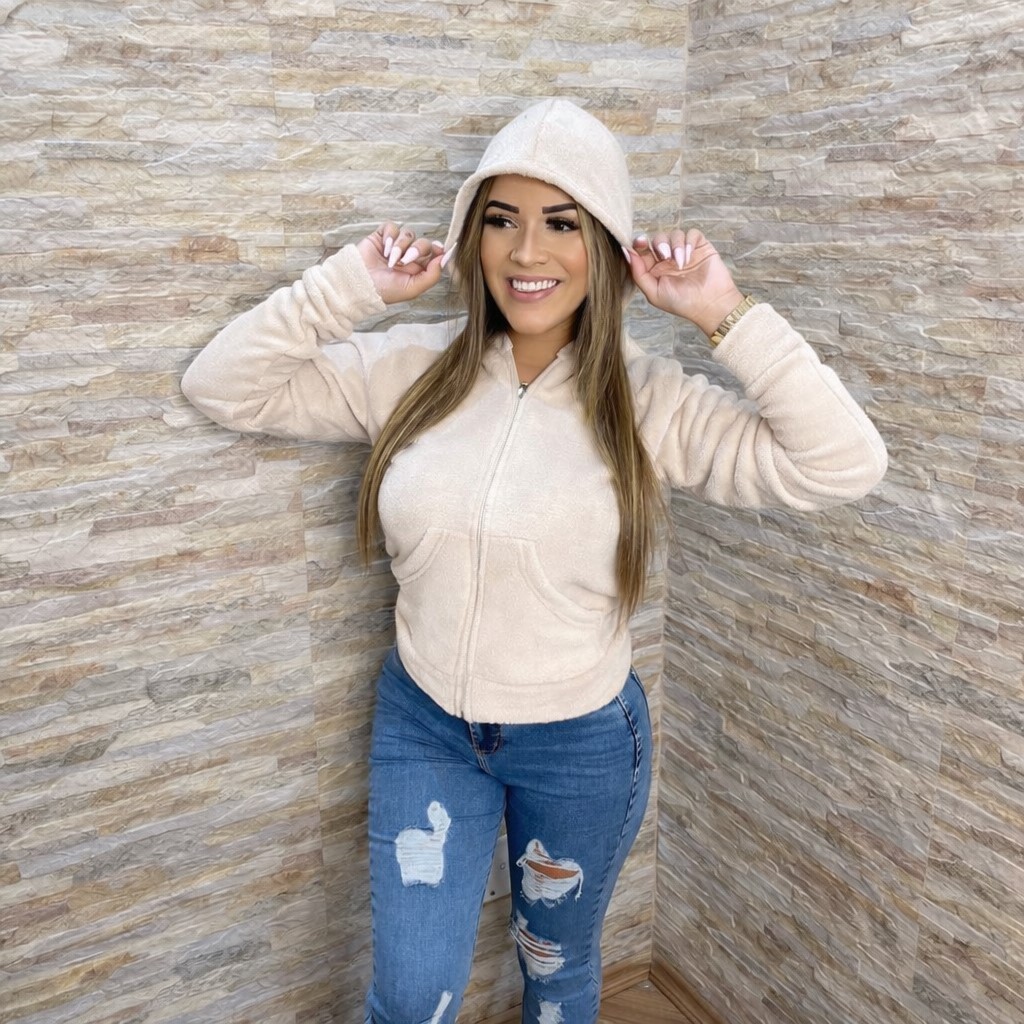 Casaco Feminino Blusa com Zíper e Capuz de Pelinhos felpuda ultra soft