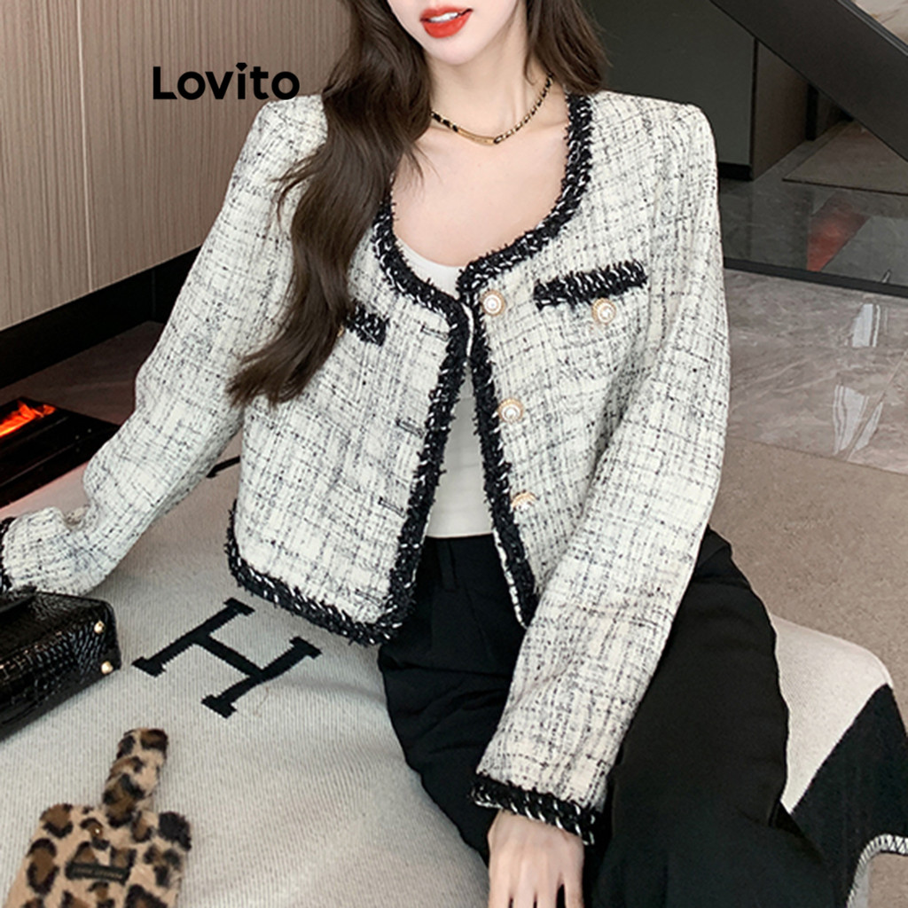 ✅DESTAQUES -❤️Bolso Falso -❤️Botão -❤️Colorblock -❤️Tweed ✅DESCRIÇÔES Estampa: Lisa Estilo: Casual Plus Size: Não Material: Poliéster Composição: 100% Poliéster Tipo de Ajuste: Regular Transparência: Não Elasticidade: Não Região de Origem: China Continental ✅REFERÊNCIA DE MODELAGEM A modelo está vestindo: P Altura: 165 cm Peso: 55 kg Busto: 88 cm Cintura: 68 cm Quadris: 93 cm ✅O PACOTE INCLUI 1X Casaco ✅INTRODUÇÃO DA LOVITO A Lovito é uma marca emergente que acredita no poder feminino, comprometida em oferecer opções de roupas modernas e econômicas para diferentes estilos, necessidades e identidades. Acreditamos que a moda deve ser divertida, libertadora e fazer você se sentir bem. Afinal de contas, o melhor acessório para qualquer visual é a autoconfiança. ✅NOTAS DE COMPRA Por gentileza, consulte a tabela de tamanhos antes de realizar a compra. Pode haver uma sutil diferença como resultado da medição manual. Todas as fotos dos produtos nesta loja são reais. Devido à diferença de iluminação e tela, é normal haver uma sutil diferença na cor e no produto. Siga nossa loja e descubra novos itens e as melhores ofertas para você! ⭐️FRETE GRÁTIS DISPONÍVEL ⭐️Todos os itens a Pronta Entrega e NOVINHOS EM FOLHA Se tiver alguma dúvida, entre em contato conosco pelo chat e responderemos o mais rápido possível.😊