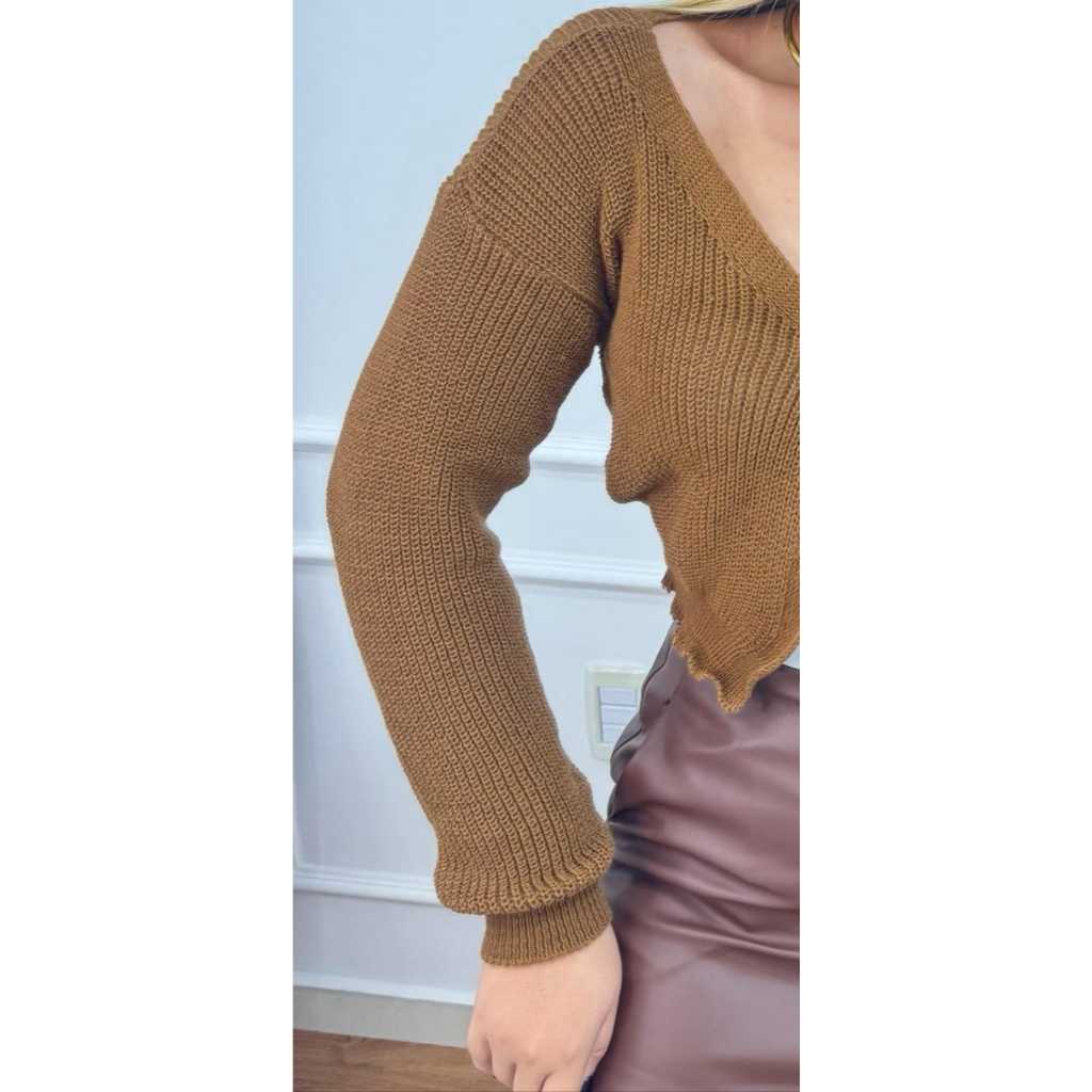 Casaco Feminino Curto de Tricot Manga Longa, Estiloso e Confortável Moda Outono e Inverno