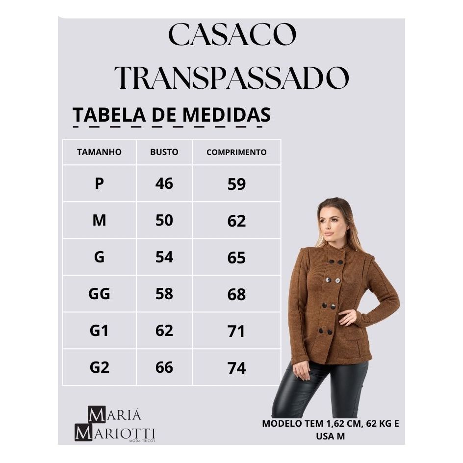 Tabela rápida para você comparar este item com outros similares de Jaquetas, Casacos e Coletes dentro do nosso catálogo.