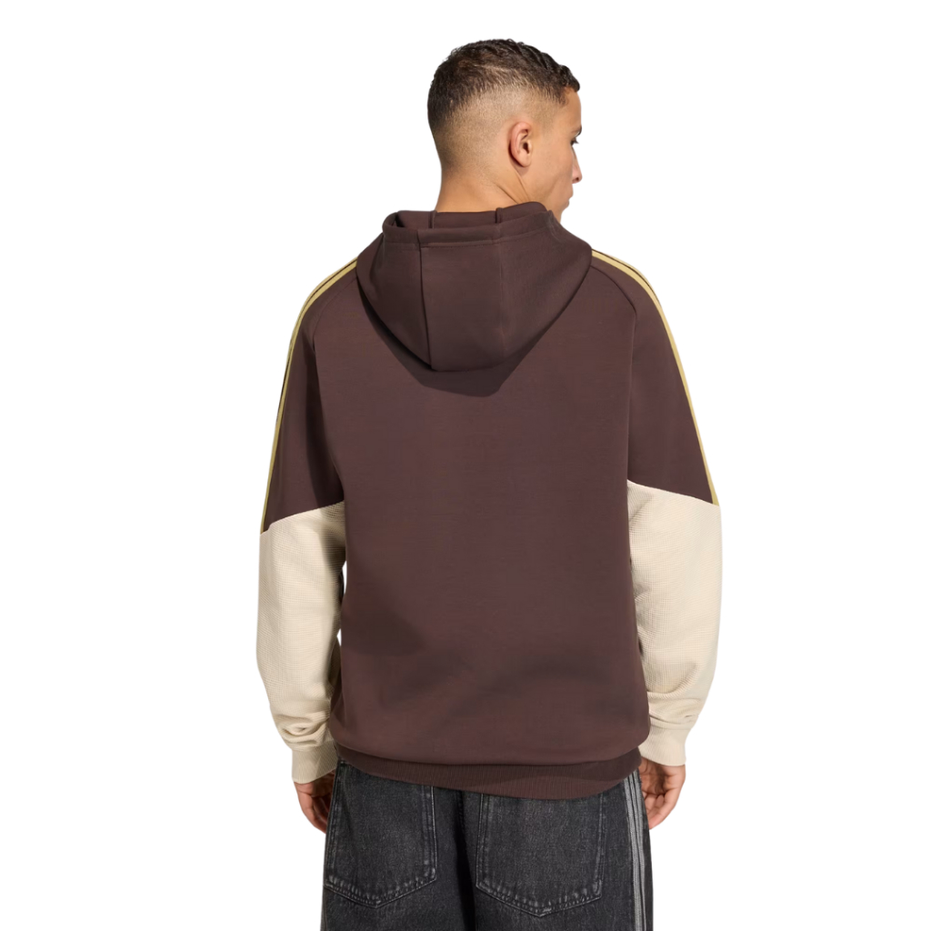 Moletom com capuz de material macio com cordão para ajuste Leve a energia do futebol brasileiro para as sessões de treinamento e para além delas com Casaco de Moletom Flamengo Treino 26. Parte da linha Tiro26 de equipamentos de treino de futebol de alto desempenho, esta blusa de moletom com capuz aconchegante combina detalhes técnicos com materiais macios e um design moderno. Criada para os torcedores do time brasileiro da Série A, Flamengo, esta blusa descontraída, mas cheia de estilo, é uma peça versátil para os treinos esportivos e encontros sociais descontraídos. Um escudo do clube bordado mostra o orgulho do time, enquanto a marca adidas acrescenta uma marca de autenticidade atlética. O ajuste foi projetado para permitir movimentos sem restrições, e o capuz com cordão proporciona uma sensação de conforto e ajuste. Mais do que simples roupas, esta blusa de moletom com capuz voltada para o futebol mostra a paixão esportiva com estilo. Modelagem padrão: Nem apertada, nem oversized, na medida certa. Modelagem normal:Recomendamos pedir o tamanho normal. Modelo veste tamanho M e tem 188 cm de altura, com medidas de 97 cm no peitoral e 86 cm na cintura. Detalhes: Modelagem padrão Cordão Mistura de algodão e poliéster Malha 3-Stripes Detalhes bordados Instruções de lavagem: Não alvejar Utilizar secadora em baixa temperatura Não lava a seco Passa em temperatura baixa Lava à máquina com água fria Informação adicional sobre cuidados: Utilizar sabão suave apenas Não utilizar amaciante Lavar com cores similares