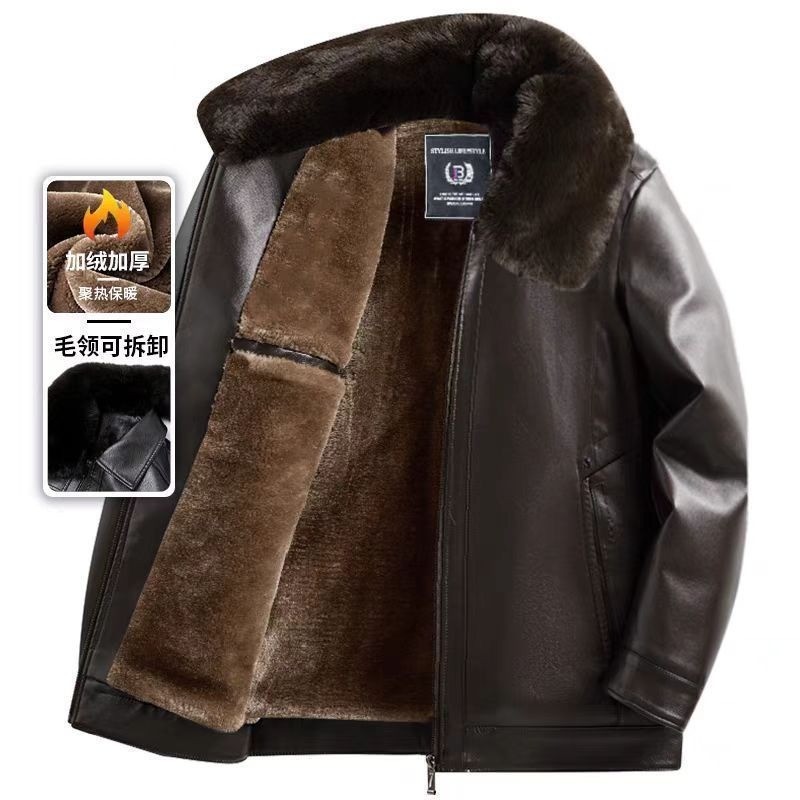 Casaco Grosso De Couro PU Masculino E Pelúcia Para Outono Inverno Estilo Coreano Casual Quente Jaqueta À Prova De Vento