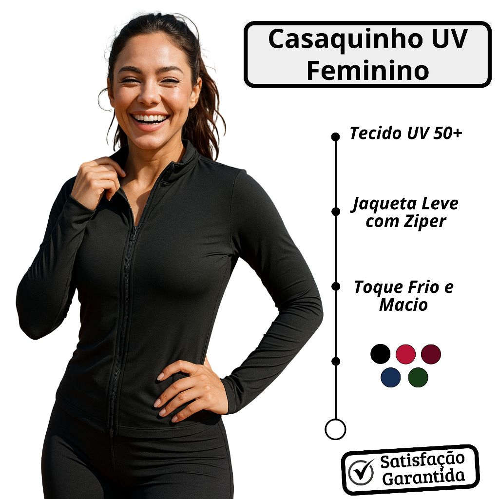 🧥 Casaquinho Fit Proteção Solar com Zíper Slim – Leve, Estiloso e com FPS 50+ 1. FAQ – Ajudar o cliente a comprar Qual o tecido? 90% Poliéster e 10% Elastano. Leve, macio, com toque gelado e secagem rápida. Tem proteção solar? Sim! Proteção UV FPS 50+ ideal para sol forte, praia, caminhada e treino. Qual tamanho devo comprar? Veja as medidas e recomendações por peso/altura na penultima foto do produto. Recomendamos pedir o tamanho maior se tiver com dúvida entre dois tamanhos. Serve para usar no dia a dia? Sim! Ele é super versátil: academia, esportes ao ar livre, moto, caminhada, clube, praia ou para sair com estilo. Posso escolher a cor? Sim, escolha no campo de variações. Temos várias cores disponíveis. Quando é enviado? Enviamos em até 24 horas úteis após a compra. A entrega costuma ser rápida! Cansada de se sentir desconfortável no treino ou sair no sol sem proteção? Você não precisa mais escolher entre conforto, estilo e proteção. Sem o casaquinho certo, você: Passa calor com peças grossas demais; Fica exposta ao sol e aos raios UV prejudiciais; Sente desconforto com tecidos que prendem os movimentos; Sofre com roupas que não combinam com seu corpo ou estilo; Acaba se sentindo insegura, suando ou com aparência de desleixo. Com o Casaquinho Fit da Excios, você: Está protegida com FPS 50+ em qualquer lugar; Se movimenta com liberdade graças ao tecido leve e elástico; Treina com conforto e ainda se sente linda; Usa no dia a dia com um look slim, moderno e que valoriza o corpo; Se sente segura com um casaco que não esquenta, não gruda e não marca. ✔ Modelagem slim que realça sua silhueta ✔ Tecido respirável com toque frio, que não esquenta ✔ Proteção UV 50+ contra sol e envelhecimento precoce ✔ Zíper frontal para praticidade e estilo ✔ Funciona como corta-vento leve para moto, esporte e rotina ✔ Combina com tudo – da academia ao look casual ✔ Secagem rápida e fácil de lavar ✔ Mais de 20 mil unidades vendidas e 11 mil avaliações positivas ✔ Garantia de 15 dias direto com a loja 📦 Escolha sua cor favorita e peça agora! Proteja-se com estilo, sinta-se leve e treine com conforto. Esse casaquinho é mais que uma peça – é uma transformação no seu dia a dia.