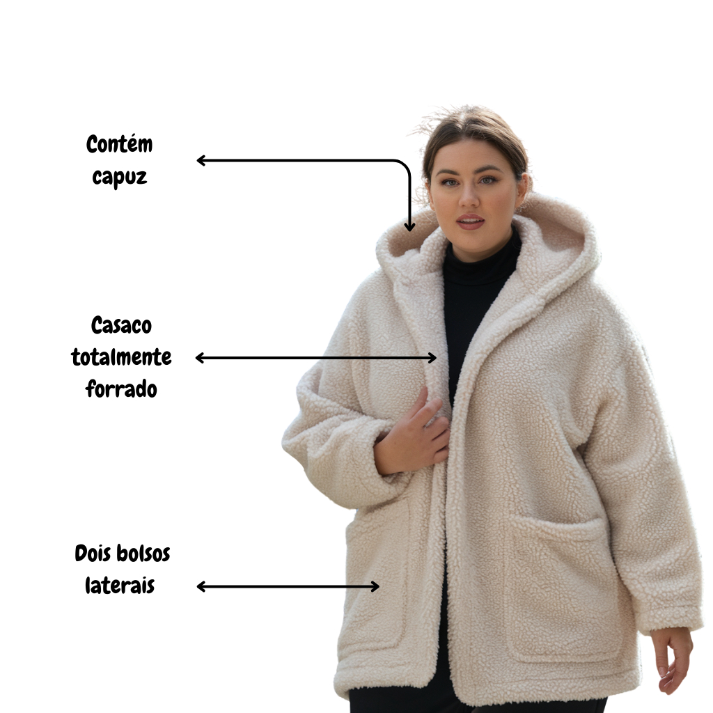 Casaco Teddy Blusa de Frio Feminina Inverno Pelinho Forrado Duplo