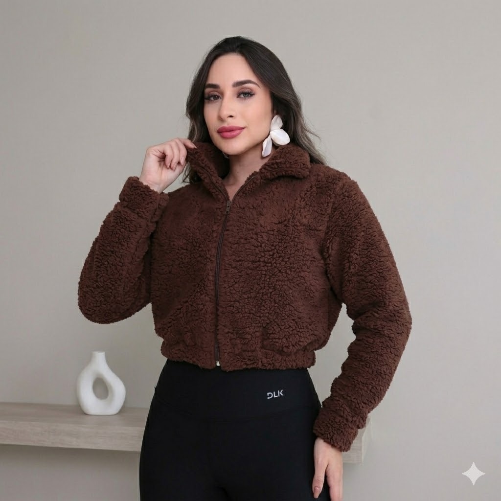 Casaco Teddy Cropped Premium – Maciez e Estilo para o Inverno O Casaco Teddy com Zíper é a peça indispensável para quem busca o equilíbrio perfeito entre conforto térmico e um visual moderno. Com toque ultra macio (pelo sintético de alta qualidade) e modelagem curta (cropped), ele eleva qualquer look básico de inverno, mantendo você aquecida com elegância. Destaques do Produto: Textura Soft: Pelo sintético tipo "carneirinho", extremamente fofinho e aconchegante. Gola Alta Adaptável: Proteção extra contra o vento, podendo ser usada aberta ou totalmente fechada. Zíper Frontal: Praticidade e versatilidade no ajuste. Punhos Ajustados: Mantém o calor interno e garante um caimento impecável nas mangas. Tabela de Medidas (cm) Confira suas medidas antes de comprar para garantir o caimento ideal: Tamanho Numeração P 36/38 M 40 G 42/44 GG 46 Dica de Estilo: A modelo da foto tem 1,65m de altura e veste o tamanho P/M. Por ser um casaco de corte mais folgadinho, ele combina perfeitamente com calças de cintura alta e botas. Especificações Técnicas: Material: 100% Poliéster (Pelo Sintético). Modelo: Jaqueta Curta / Cropped. Cores disponíveis: Preto, Marrom Chocolate e Preto. Cuidados: Lavagem à mão ou ciclo delicado para preservar a maciez das fibras. Garanta o seu agora e transforme seus dias frios em um momento de puro conforto!
