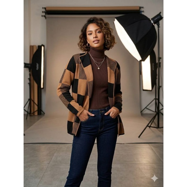 | casaco tricot jacard xadrez quadriculado capa kimono este produto | R$ 40,48 | 56% | 5.0/5 | 7 |
