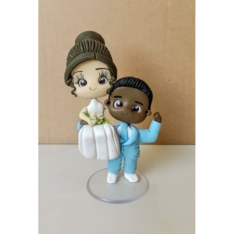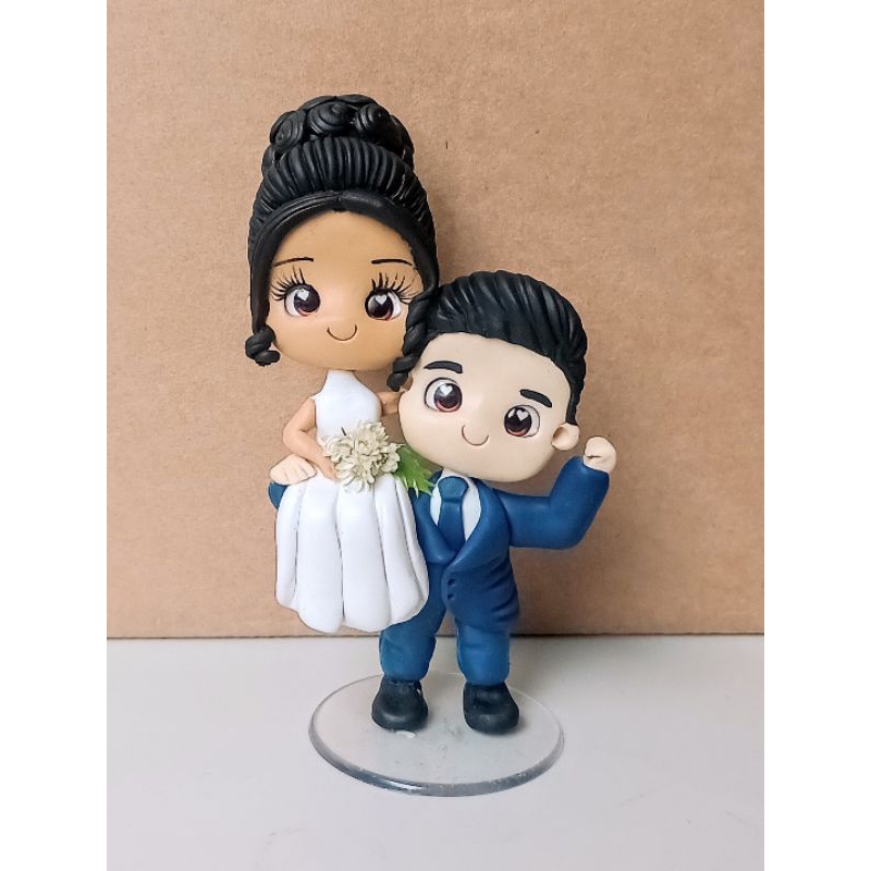 Noivinhos em biscuit entrega rápida. tamanho 11 cm não faço personalizado, mas pode mudar a cor da pele, cabelo, penteado, terno e buquê. quando fizer a compra, deixe no chat o que vai mudar neles. feito de biscuit feitos como muito carinho,