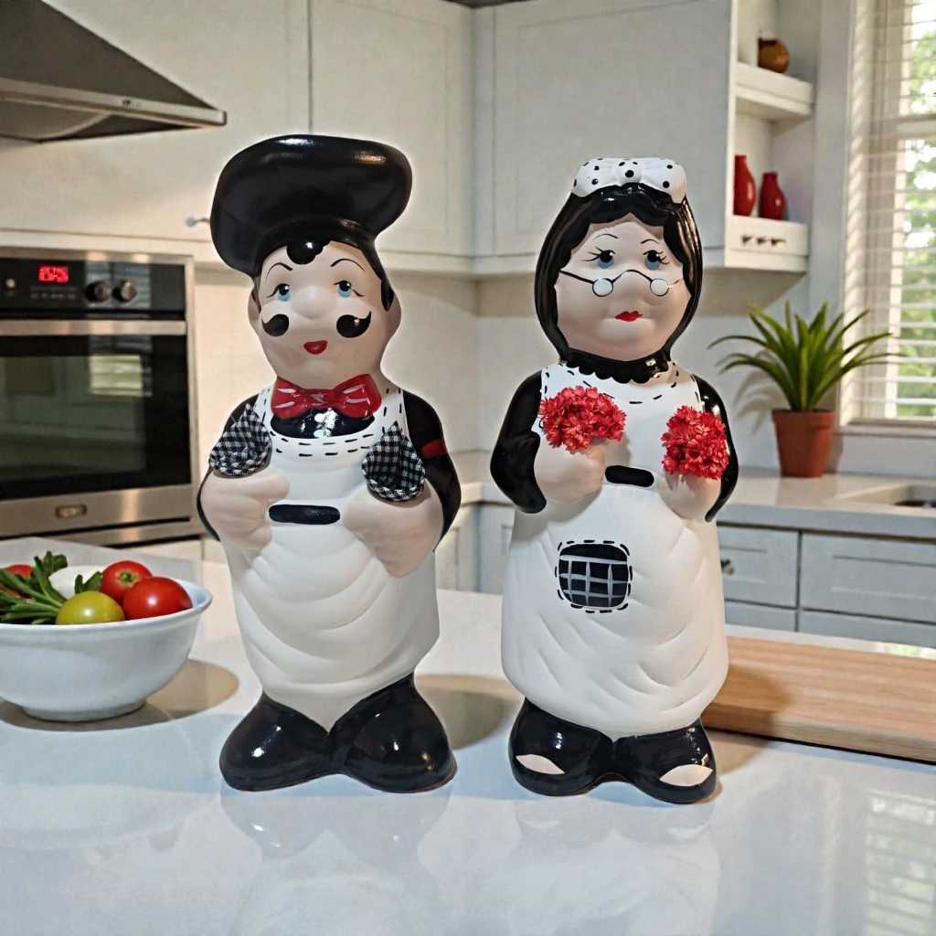 Casal Vovo Cozinheiro Porta Colher De Pau Preto
