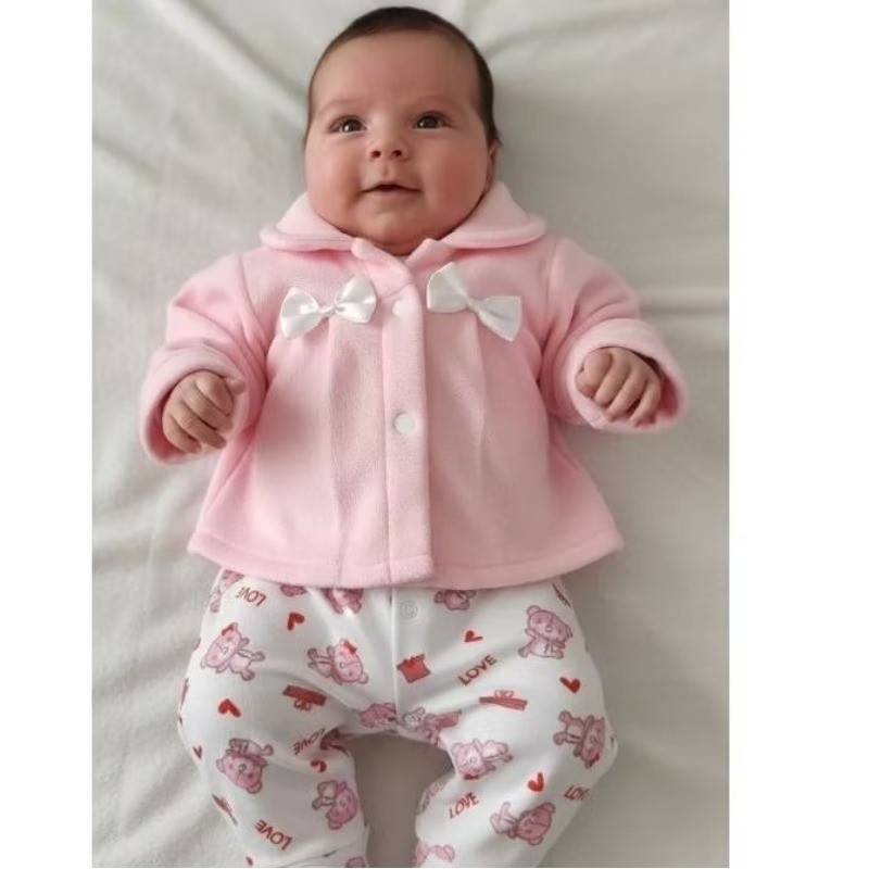 Casaquinho Bebê Menina em Soft Peluciado Inverno Super Quentinho e Confortável - Envio Imediato