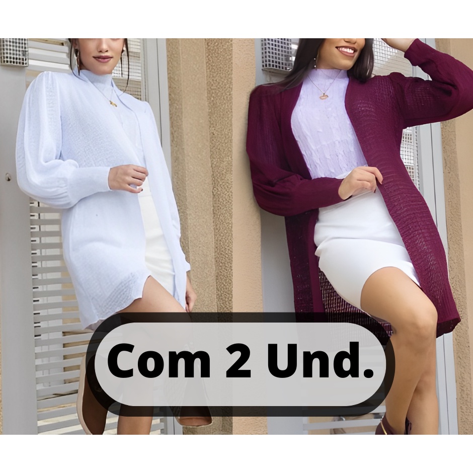 Casaquinho Tricô Kit 2 Cardigan Feminino Manga Longa