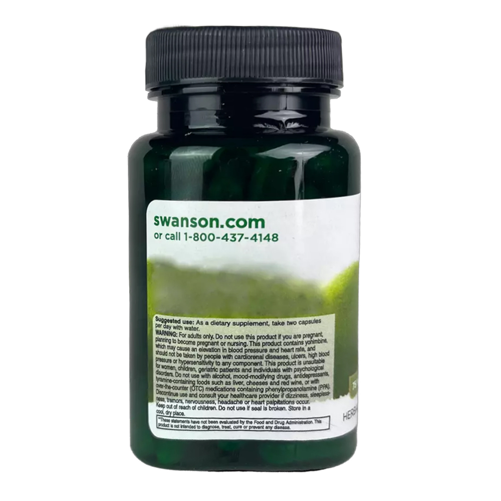 Casca de Yohimbe 75mg Swanson 100 cápsulas Importado