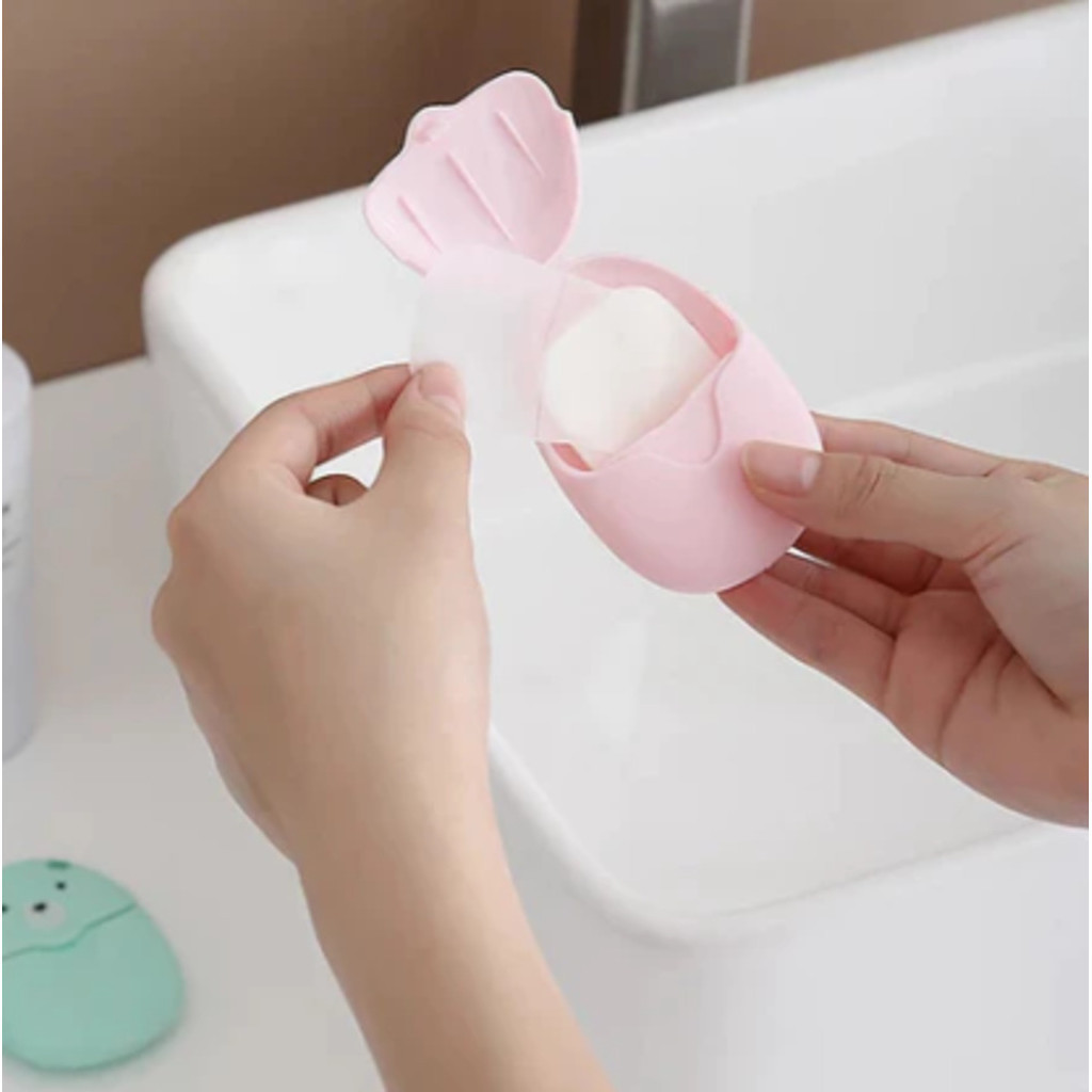 Case 50 Folhas Mini Sabonete Perfumado Papel Lava Mãos Portátil Descartável Viagem Sabão
