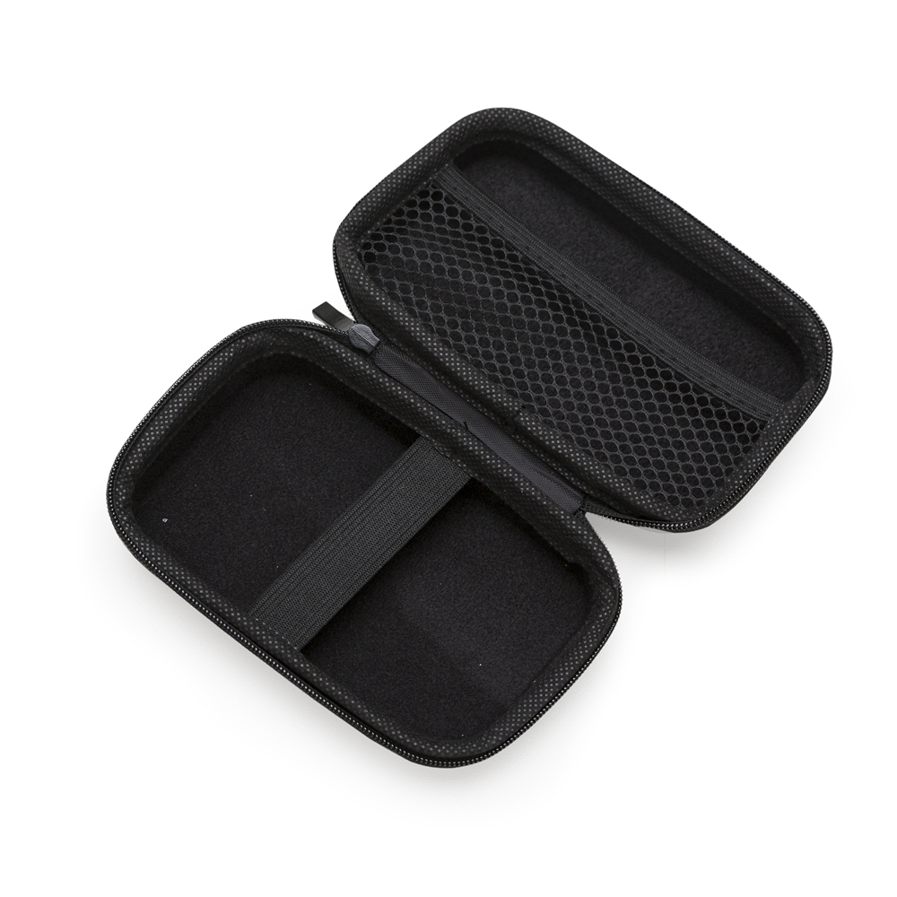 ASTRO BRINDES Estojo couro sintético com zíper, possui rede interna e elástico de nylon. Case utilizada para montar kits tecnológicos. *** ACIMA DE 5 UNIDADES *** Largura : 8,6 cm Profundidade : 4,2 cm Espessura : 3,5 cm Comprimento : 13,2 cm Peso aproximado (g): 36