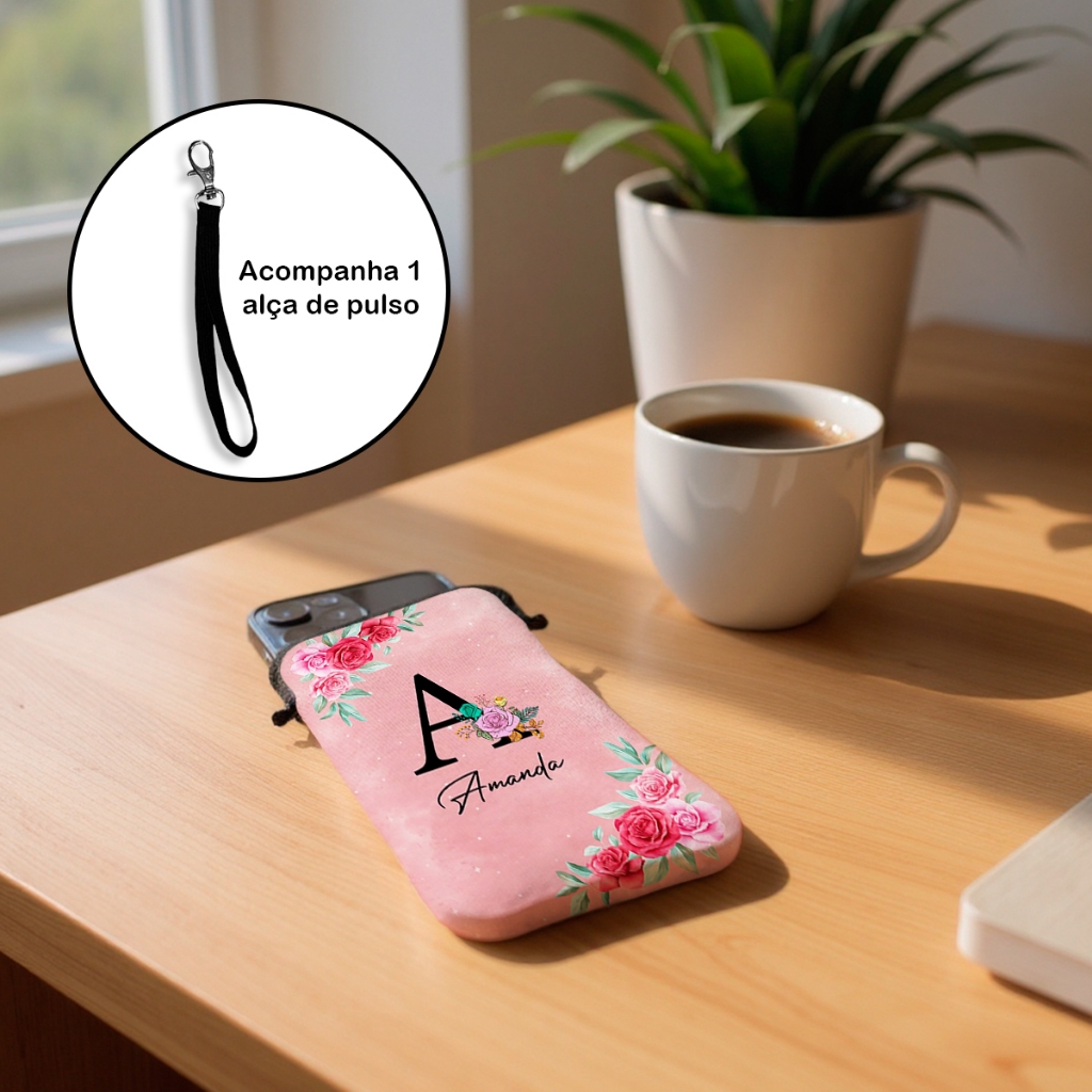 Case para Celular com Zíper Personalizado com Nome Flores Formas