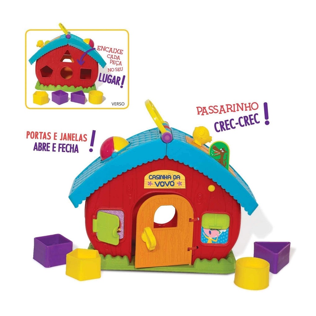 DESCRIÇÃO DO PRODUTO Casinha da Vovó com porta e chave, formas para encaixar, telhado que abre e fecha, a janelinha com surpresa. Olha o lobo mal. Diversão garantida!! Ajuda na coordenação motora e raciocínio do bebê. CARACTERÍSTICAS TÉCNICAS Conteúdo da Embalagem: 1 Casinha com Atividades. Dimensões Aproximadas do Produto: 21,5 x 23 x 9,4 cm Dimensões da Aproximadas da Embalagem: 26 x 24 x 12,3 cm (Altura x Largura x Comprimento/Profundidade) Material/Composição: Plástico Idade Mínima Recomendada: Maiores de 12 meses. Alimentação: Não se aplica. Marca: Elka Referência: 1052 Garantia: 3 meses contra defeitos de fabricação Aviso: As informações e imagens divulgadas são de total responsabilidade do fabricante/fornecedor. Produto 100% original, lacrado e disponível a pronta entrega para todo Brasil! APROVADO PELO INMETRO