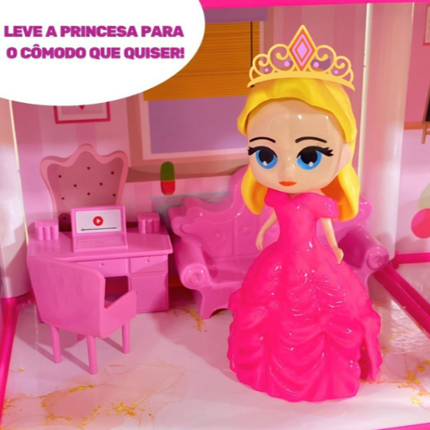 Casinha De Boneca Infantil Grande Com 4 Andares Com Cozinha Sala Quarto Castelo Princesinha