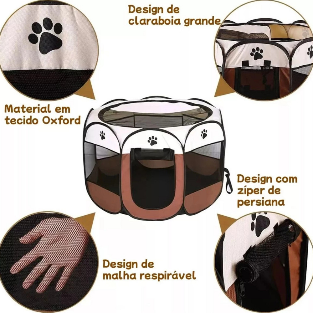 O mais novo modelo de casinha chegou para revolucionar a forma de proporcionar conforto para seu pet. Pode ser utilizado por qualquer animal, sendo eles: - Cachorros - Gatos - Coelhos - Porquinhos de índia, etc. Com suas abas dobráveis, ficou ainda mais fácil levar o cercadinho para passeios, viagens ou até mesmo utilizar dentro do carro no porta malas para levar seu pet. Disponível em 3 tamanhos: (Tamanhos considerados com o cercadinho completamente aberto) - Tamanho P: - Altura: 43 cm - Largura: 73 cm - Tamanho M: - Altura: 58 cm - Largura: 91 cm - Tamanho G: - Altura: 58 cm - Largura: 112 cm Quantidade: 1