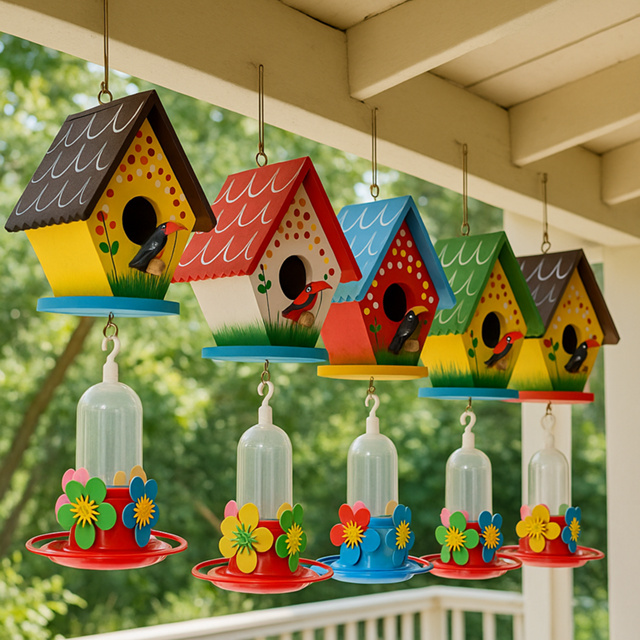 Casinha de Passarinho de madeira com gancho para bebedouro de beija flor Casa para pássaros