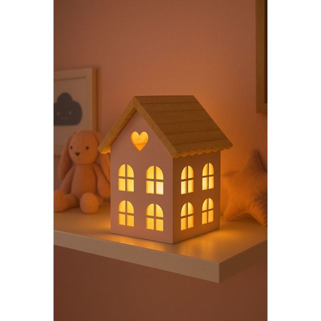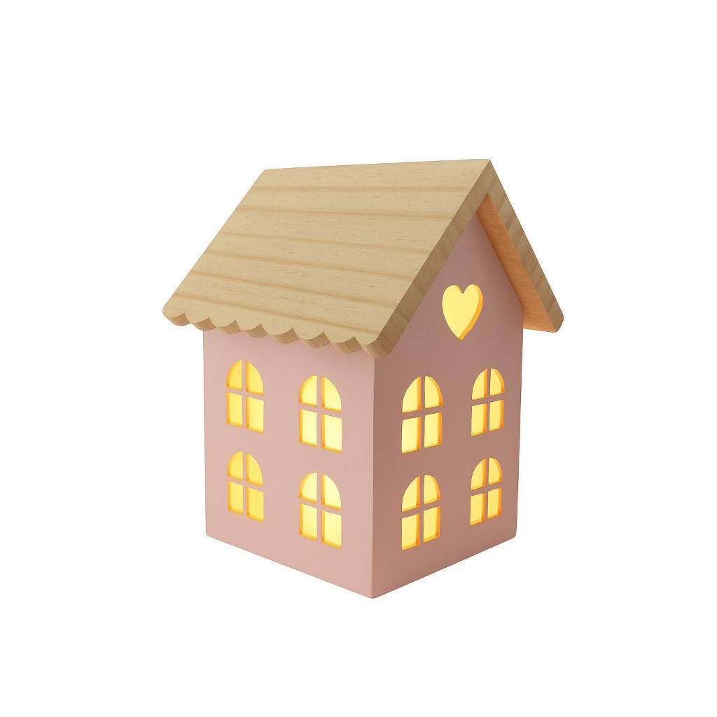 Casinha Luminaria em Mdf Rosa Para Quarto Menina Com fio de fada Novidade