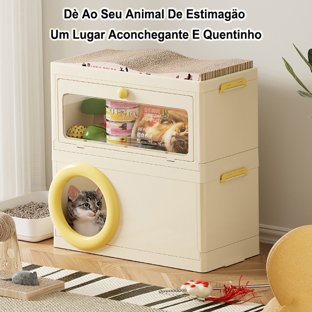Casinha Plástico para Gatos de Rua com Caixa Areia XXL Empilhável Arranhador Armazenamento Prático