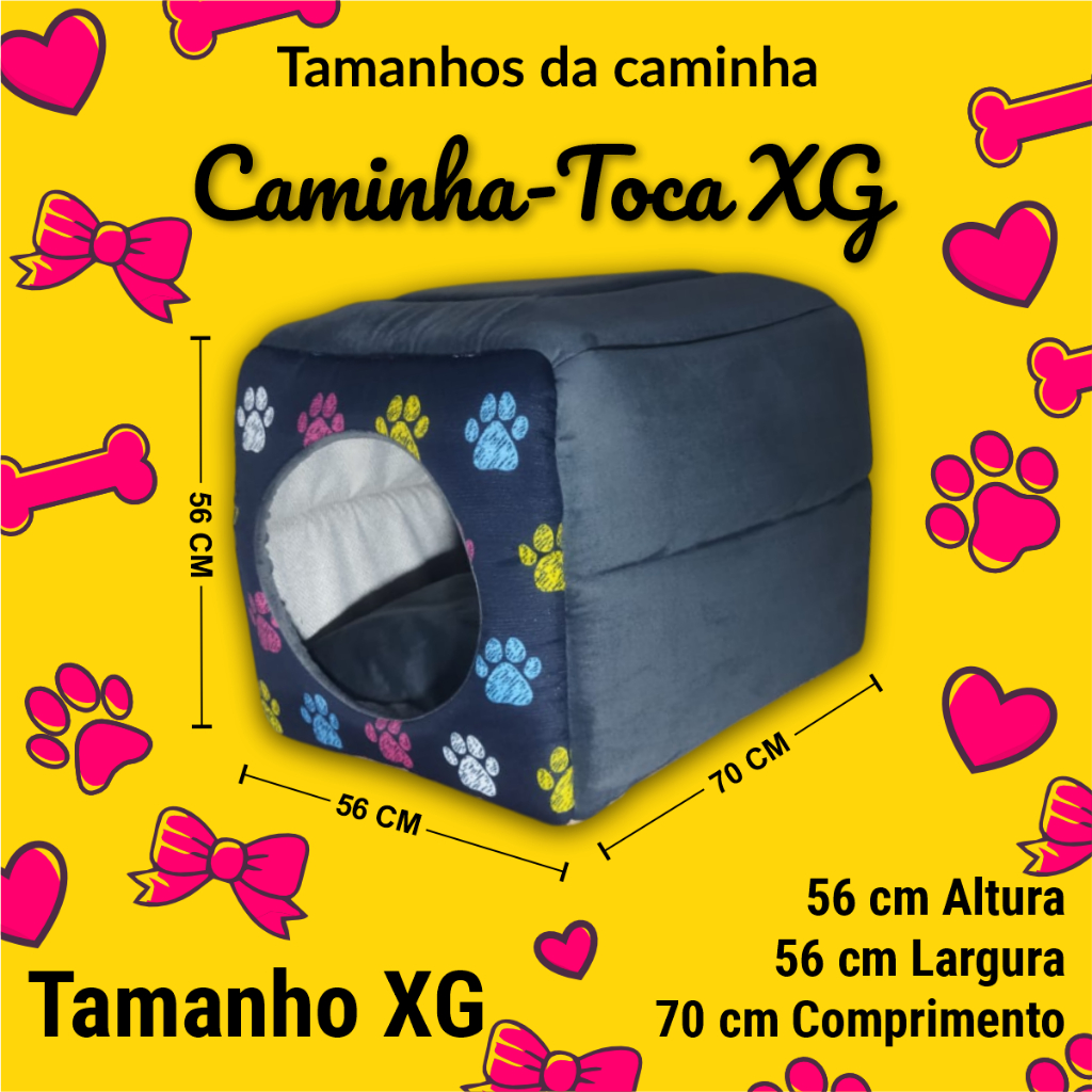 Toca GG Medidas: Comp. 65 / Larg. 45cm / Alt. 45cm Toca XG Medidas: Comp. 70cm / Larg. 56cm / Alt. 56cm Características Destacadas: 1.Conforto e Maciez - Fabricada com materiais de alta qualidade e excelente acabamento, a Caminha para Pet proporciona o máximo de conforto e aconchego para o seu pet. Sua superfície macia e agradável oferece um espaço acolhedor para que possa relaxar e descansar com tranquilidade. 2.Minimalista e Charmoso - O design quadrado e minimalista da caminha a torna um complemento elegante para qualquer cômodo da sua casa. Seu visual charmoso e discreto se integra harmoniosamente ao ambiente, sem comprometer a decoração. 3.Versatilidade e Portabilidade - A caminha é leve e fácil de transportar, tornando-a ideal tanto para uso doméstico quanto para levar em viagens. Seu pet poderá desfrutar do mesmo nível de conforto e segurança em qualquer lugar que estiver. 4.Borda Elevada para Segurança - Com uma borda elevada, a caminha proporciona suporte ao pescoço do seu gato, criando uma sensação de segurança e aconchego. Isso ajuda seu pet a relaxar e se sentir protegido enquanto descansa. 5.Fácil Limpeza - A limpeza da caminha é simples e prática. Pode ser lavada à mão ou na máquina de lavar em modo delicado, com sabão neutro, e deve ser seca à sombra para garantir sua durabilidade.