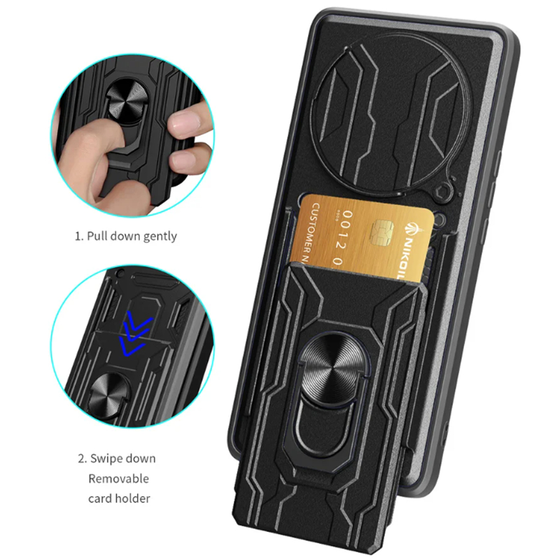 Caso de telefone rígido de prova de choque com parêntese e slot de cartões Para Redmi Note 15 Pro+ Note 14 Pro Note 13