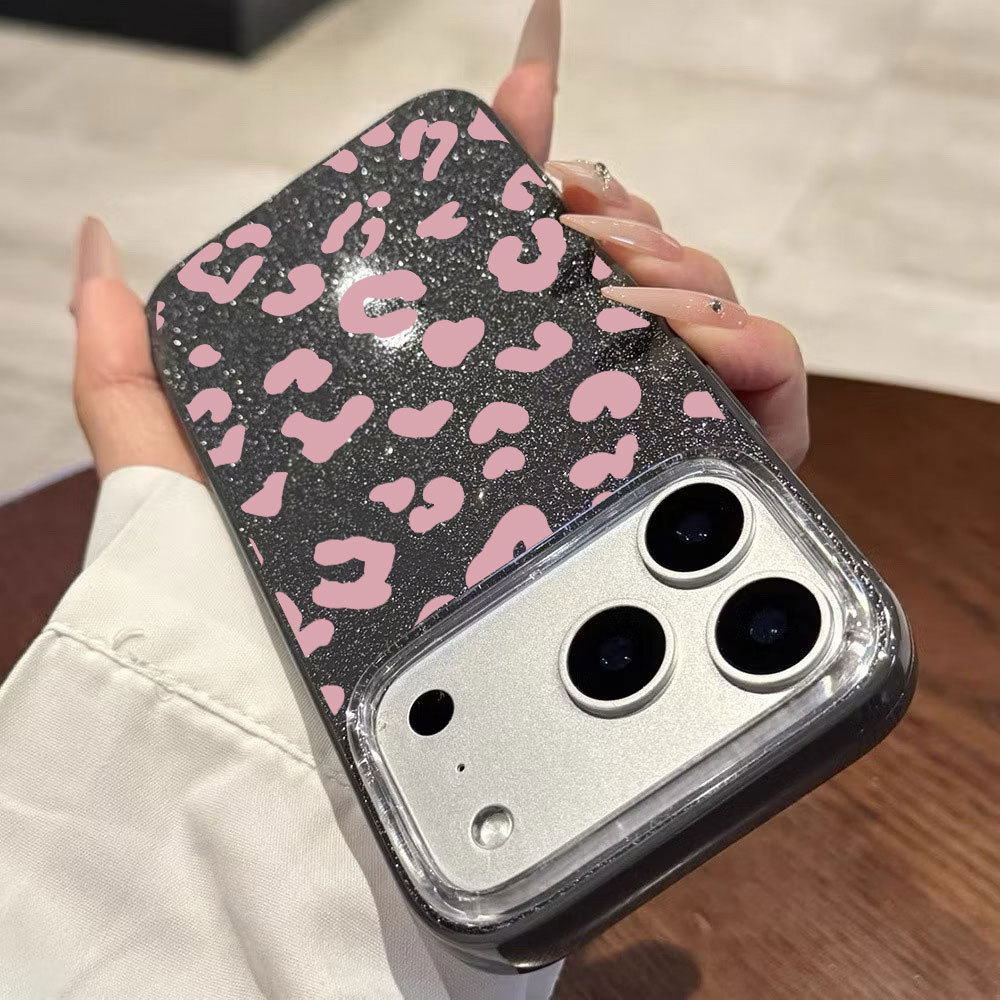 Caso Glitter Para iPhone 17 16 15 13 11 14 12 11 Pro Max Plus XR Ar Rosa Leopardo Impressão Luxo Capa Macia
