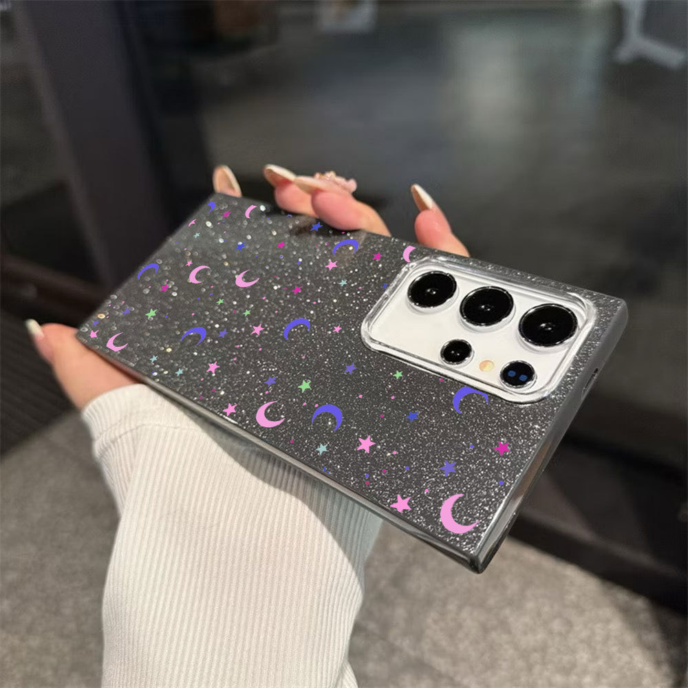 Caso Glitter Para Samsung A17 A07 A06 A15 A16 A14 A13 A12 A32 A56 A36 A55 A54 A23 S26 S25 Bonito Lua Strars Luxo Capa Ma