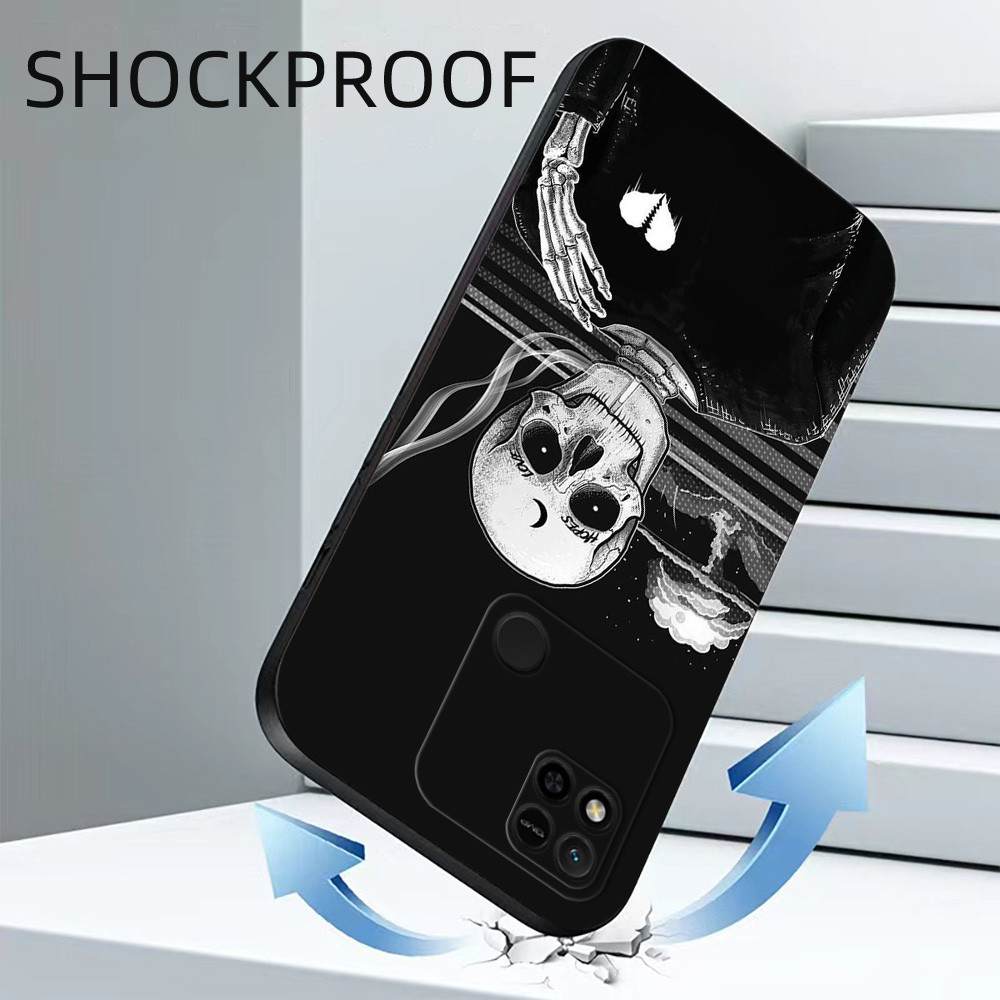Caso Para Xiaomi Redmi 10C 10A De Telefone Silicone Capa Traseira Preto tpu Bonito Dos Desenhos Animados Sorriso Rosto R